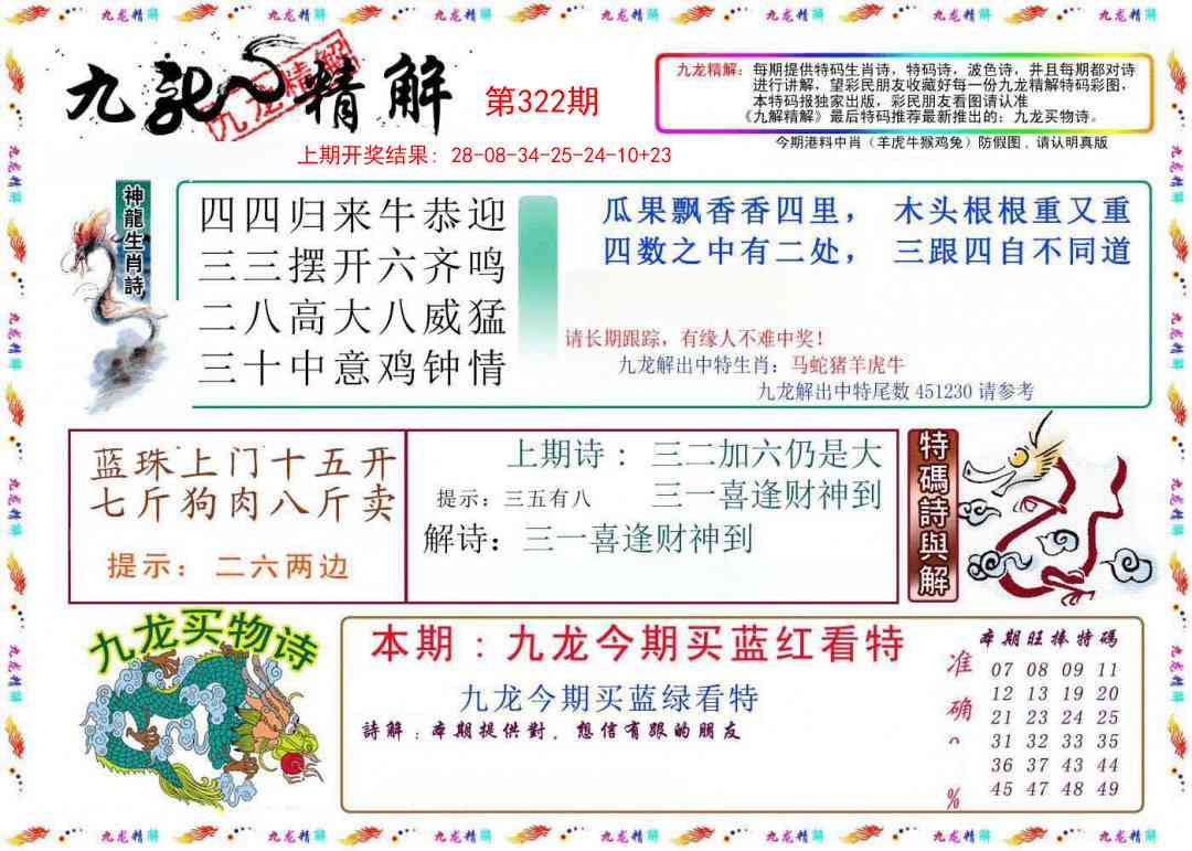 322期: 【龙虎鸡狗猴马猪羊牛】 开羊47准